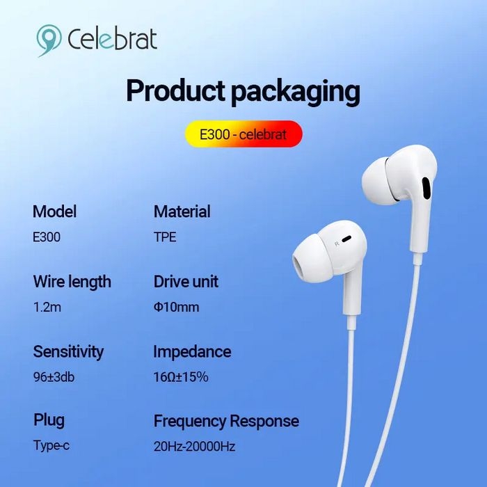 هندزفری سلبریت مدل E300 تایپ سی نمونهای از نوآوریهای روز دنیای صوتی است که با تلفیق طراحی ارگونومیک، کیفیت ساخت بالا و فناوری انتقال دیجیتال صدا، تجربهای متفاوت را به کاربران عرضه میکند. ویژگیهای کلیدی این هندزفری عبارتند از:- طراحی مدرن و ارگونومیک: خطوط نرم و طراحی زیبا، همراه با استفاده از مواد مقاوم و پوششهای نرمی که راحتی استفاده طی فواصل طولانی را تضمین میکند. این طراحی نه تنها از نظر زیبایی، بلکه از نظر کاربری نیز بسیار موفق عمل میکند.