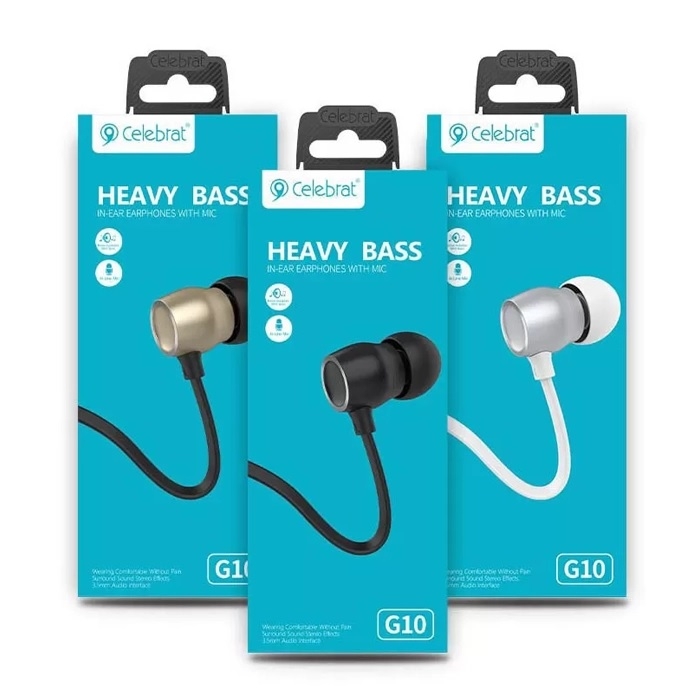 هندزفری اصلی سیم دار سلبریت Celebrat G10 دارای بیس گوش نواز است که مناسب جهت استفاده روزمره ، پیاده روی ، گیمینگ و ورزش میباشد که در رنگ های متنوعی تولید شده است هندزفری سلبریت G10 دارای میکروفون با کیفیت جهت برقراری تماس دارد و همچنین برای سهلوت استفاده کلید پاسخ و قطع کردن تماس در کنار میکروفون تعبیه شده است.