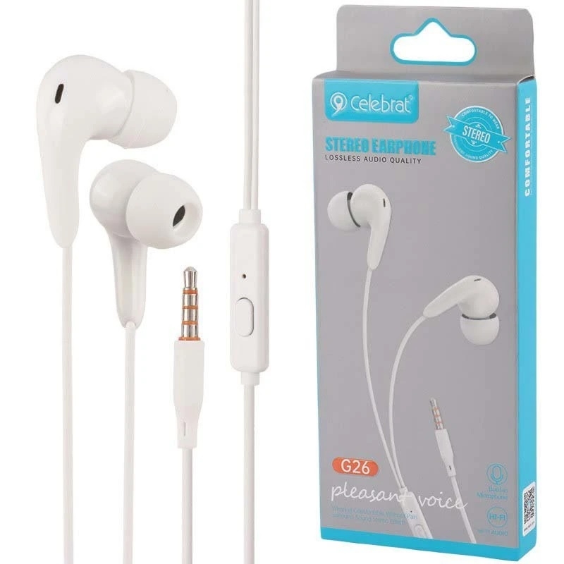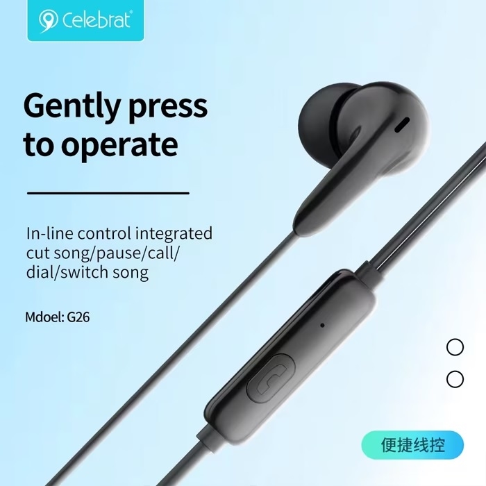 هندزفری سیمی سلبریت G26 دارای کیفیت صدای Hi-Fi و استریو می باشد که با طراحی ارگونومیک و وزن سبک خود براحتی در گوش قرار می گیرید و مانع از درد و خستگی گوش در استفاده طلانی مدت می شود.