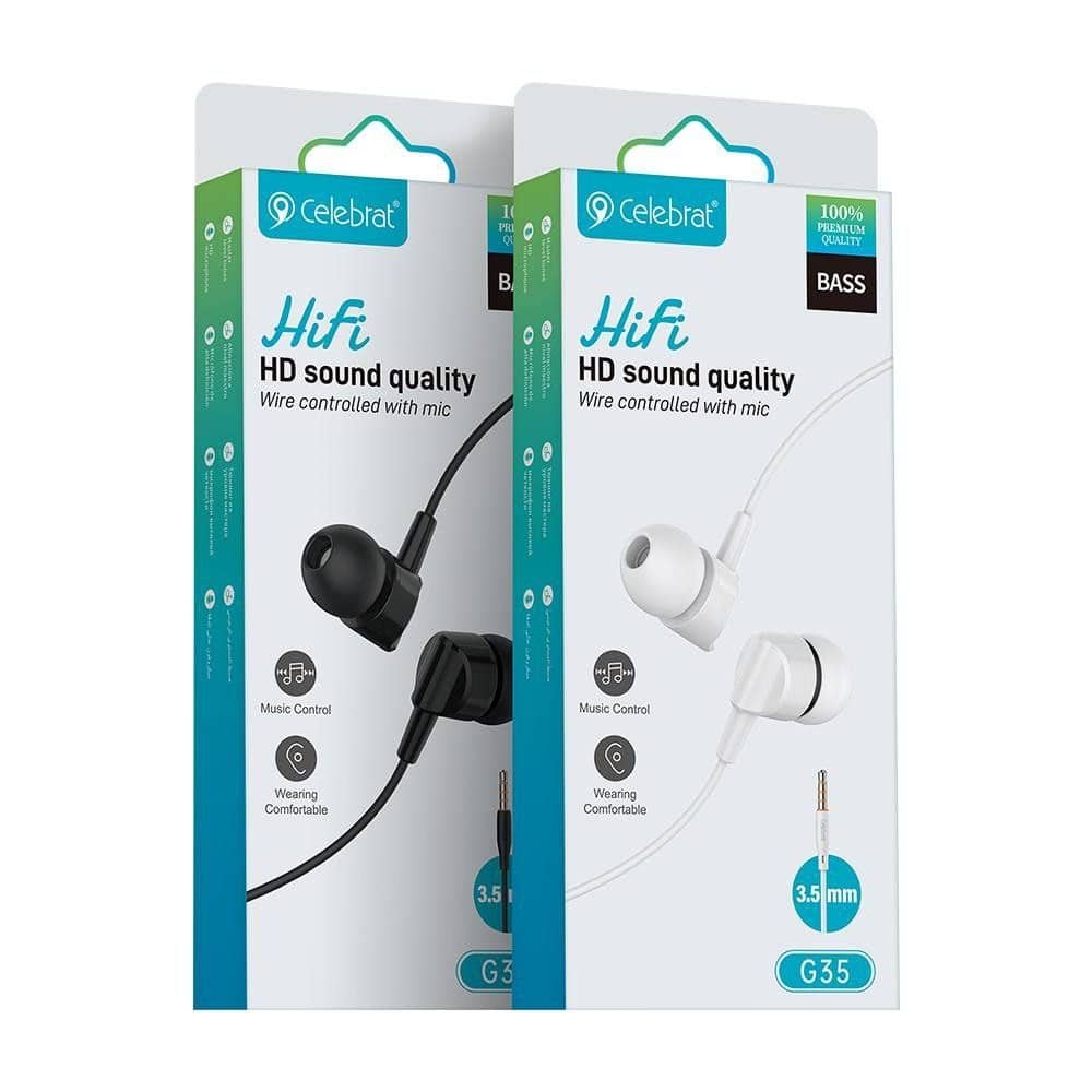 هندزفری سیمی سلبریت مدل G35 با ارائه صدای استریو واضح و باس متعادل، تجربه شنیداری مطلوبی را برای کاربران فراهم میکند. بلندگوهای این هندزفری توانایی تولید صدایی شفاف در طیف فرکانسی گسترده دارند که موسیقی، پادکست و مکالمات را با وضوح بالا منتقل میکند.