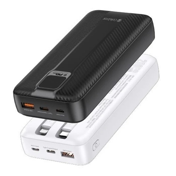 پاوربانک سلبریت PB07 دارای دو عدد کابل (Type C , Lightning) و یک پورت خروجی USB و یک عدد پورت خروجی تایپ سی می باشد. و با دو پورت تایپ سی و میکرو قابل شارژ می باشد.