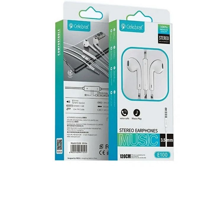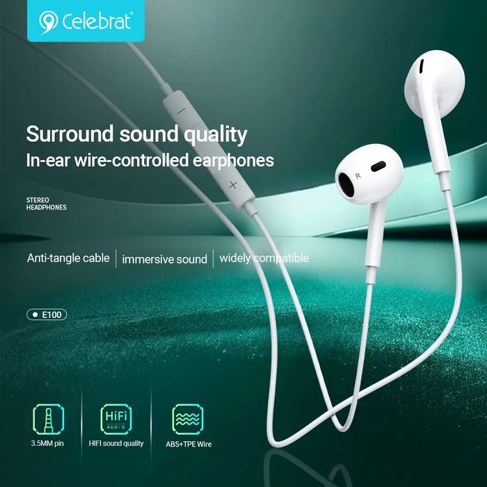 کابل مقاوم و ضدگره هندزفری سلبریت E100 به شما این اطمینان را میدهد که با استفاده روزمره و مداوم، از کیفیت بالای خود برخوردار خواهد بود. این هندزفری با جک 3.5 میلیمتری سازگاری کامل با اکثر دستگاههای هوشمند، تبلتها و دستگاههای پخش موسیقی دارد، و به راحتی بدون نیاز به مبدل به این دستگاهها متصل میشود.
